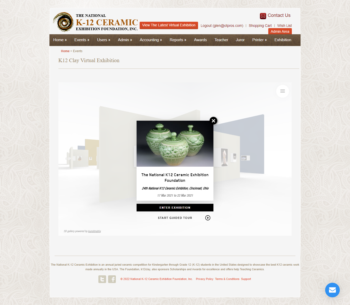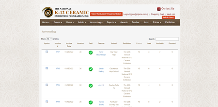 An admin management for clients to manage exhibition participation, student-teacher-school logins, entries, and more as following: