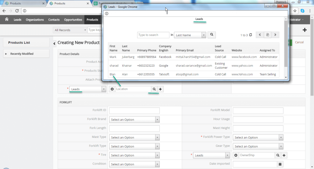 Company needed CRM system to manage leads, opportunities, inventory of stock to manage buy, sell, rent forklifts. Company also wants to manage status of third party forklift being under service.