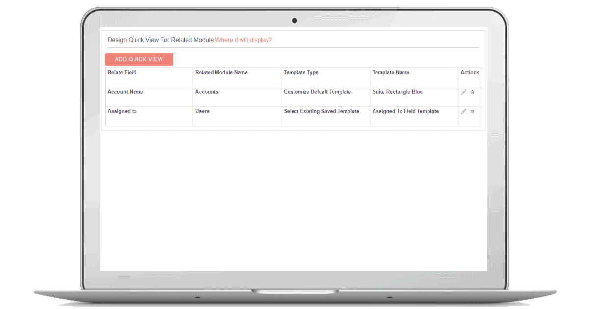 The Quick View add-on for SuiteCRM helps increase the visibility of CRM record data in an easier, simpler, and more customizable way. It just takes a mouse click to clock on the Quick View icon in order to view key fields and stay productive.